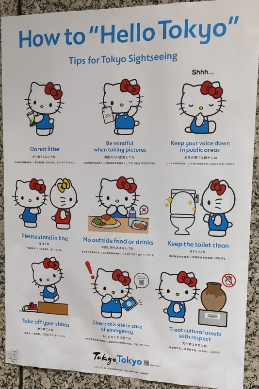 東京都の作成したキティちゃんのポスターは日本のマナーが分かりやすく記載されていました。観光客を受け入れる側も工夫が必要ですよね。国際都市、東京都を体感できました。